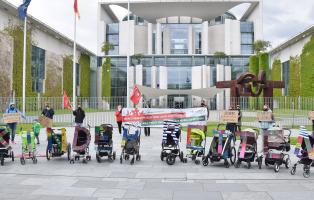 #LeaveNoOneBehind: NaturFreunde Berlin protestieren mit leeren Kinderwagen für Evakuierung griechischer Lager