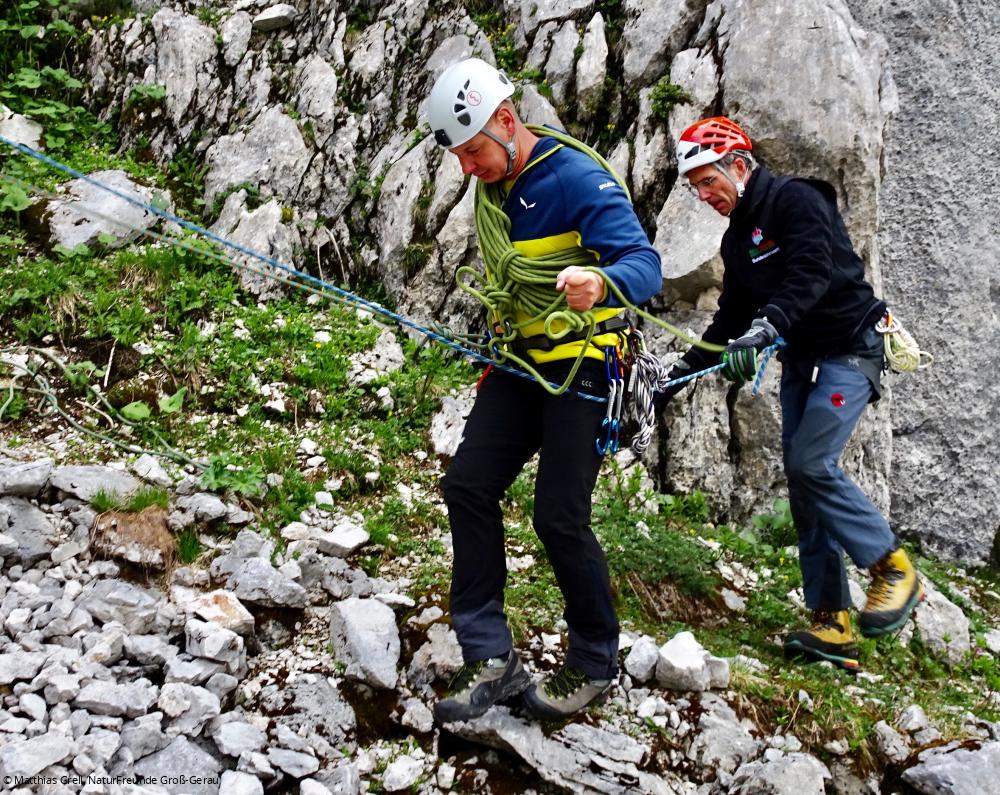 Interessant wurde es auch bei Diskussion und Bewertung der verschiedenen Führungstechniken und deren Anwendung in der Bergsportausbildung der NaturFreunde. Gleitendes Seil, gestaffeltes Klettern, Gehen und Führen am kurzen oder längeren Seil wurden hinsichtlich ihrer Bedeutung als Sicherungsmethode und Schulungsinhalt diskutiert.
