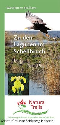 Der Natura Trail führt durch das Naturschutzgebiet Schellbruch. Zunächst entlang des Gänseweges entlang der Trave. Südlich davon breitet sich der Feuchtlebensraum Medebekwiesen aus. Als nächstes wird der Aussichtspunkt an der Großen Lagune passiert, ein Eldorado für Vogelfreunde. Mit etwas Glück können hier Seeadler beobachtet werden aber auch Graureiher und Schwarzhalstaucher sind hier heimisch. Zurück geht es auf einem historischen Treidelpfad, östlich entlang der Trave bis zum malerischen Fischerdorf Gothmund.