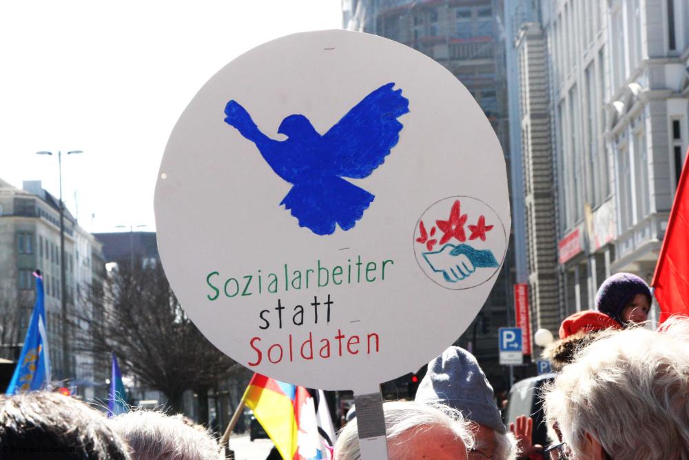 Wir gehen auf die Straße, weil wir von unserer Regierung eine Politik des Friedens verlangen, was beinhaltet: