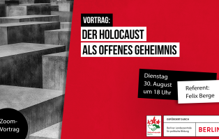 Referent: Felix Berge studierte Geschichtswissenschaft und Philosophie in Bielefeld und Maynooth und arbeitet als Wissenschaftlicher Mitarbeiter am Institut für Zeitgeschichte in München an einer Dissertation zu informellen Kommunikationspraktiken in der nationalsozialistischen Mehrheitsgesellschaft im Zweiten Weltkrieg.